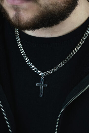 NASZYJNIK PANCERKA 7MM Z KRZYŻYKIEM CARBON SREBRNY